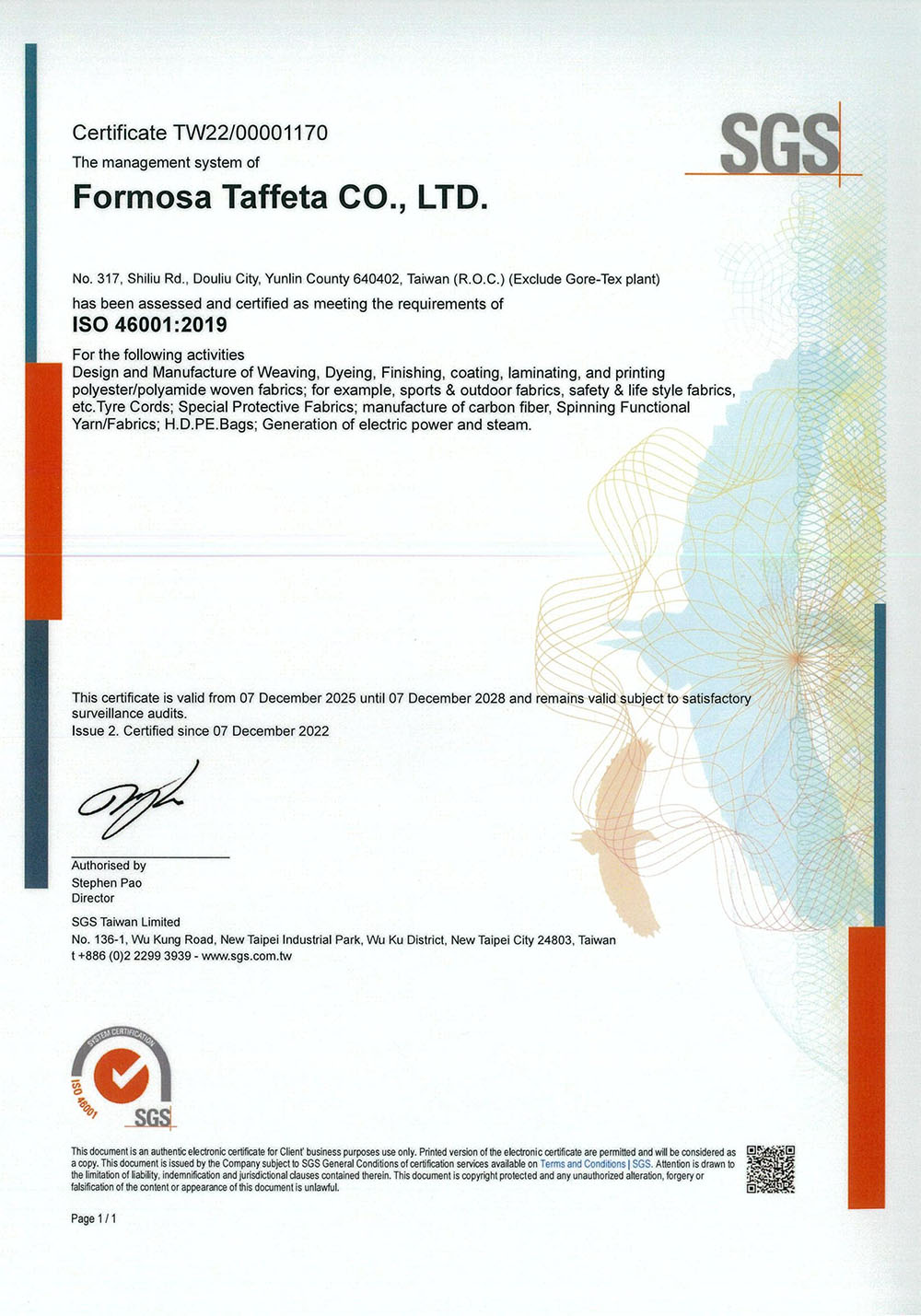 ISO 46001水資源效率管理系統聲明書_臺灣廠