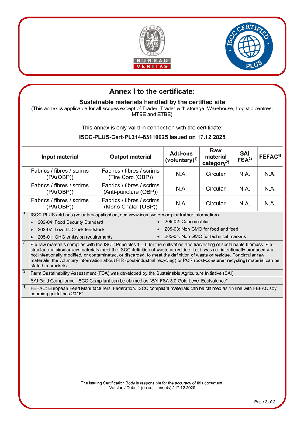ISCC PLUS Certificate for Tyre Cord Plant-2