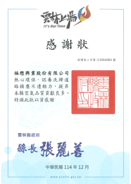 115年雲林縣政府公廁認養感謝狀