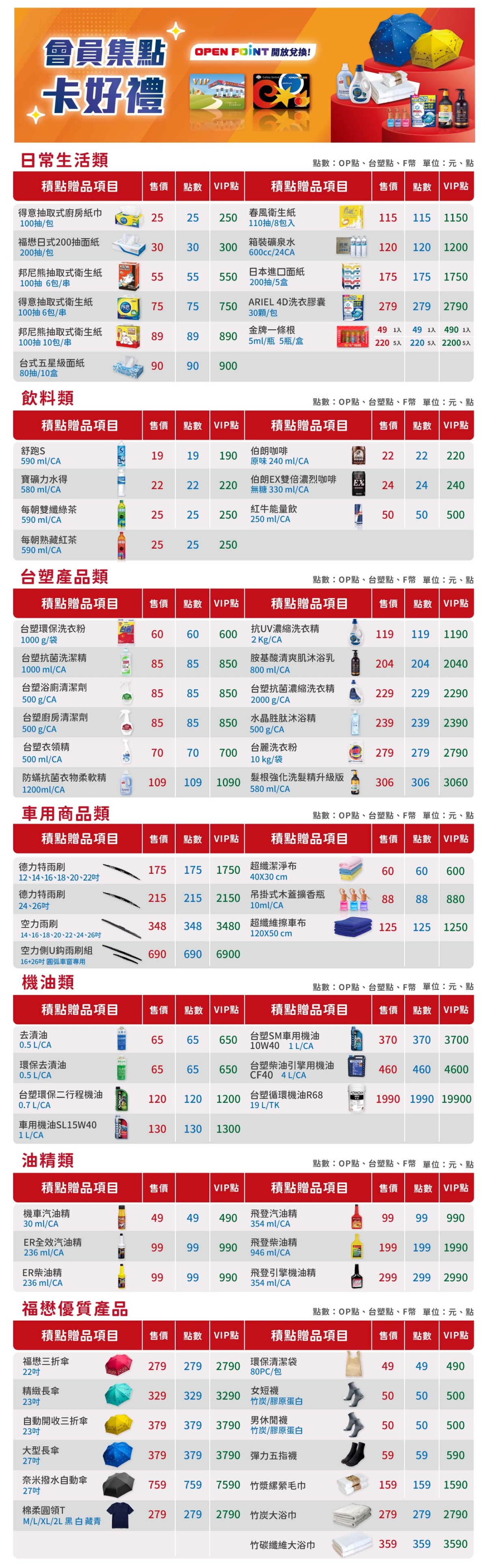 福懋加油站兌換商品(可使用現金、F幣、OP點、台塑點、VIP點兌換)