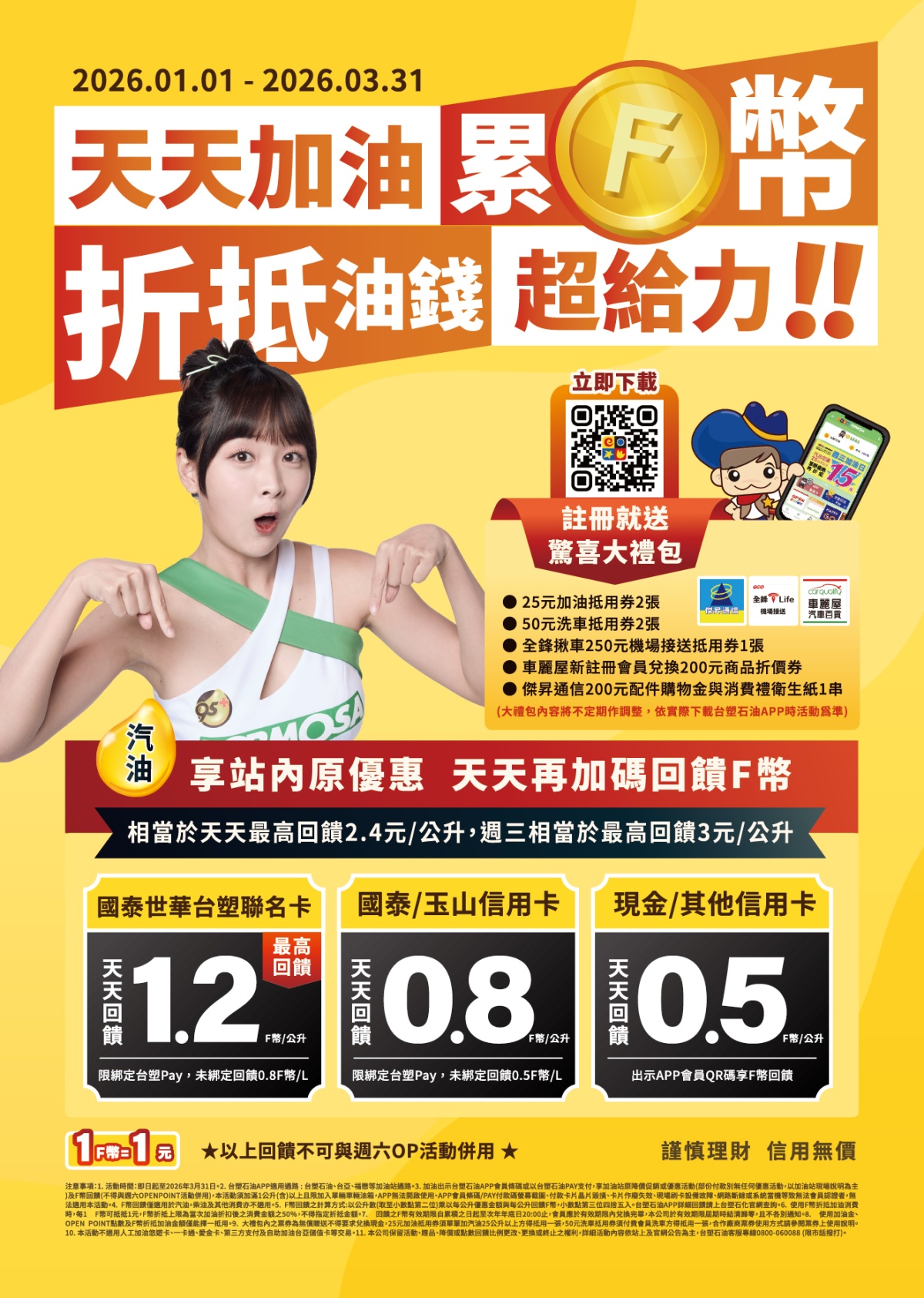 天天加碼回饋1.2F幣/公升 再享原優惠!