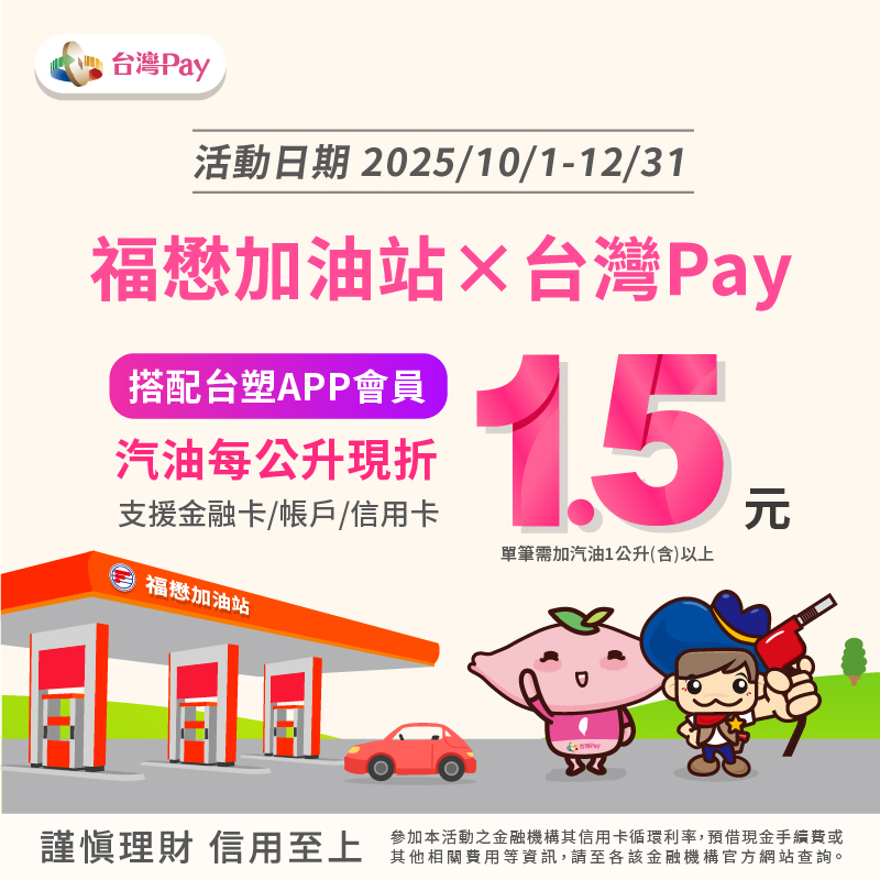 2025年10/1-12/31 福懋加油站「台灣PAY 加油享回饋」活動